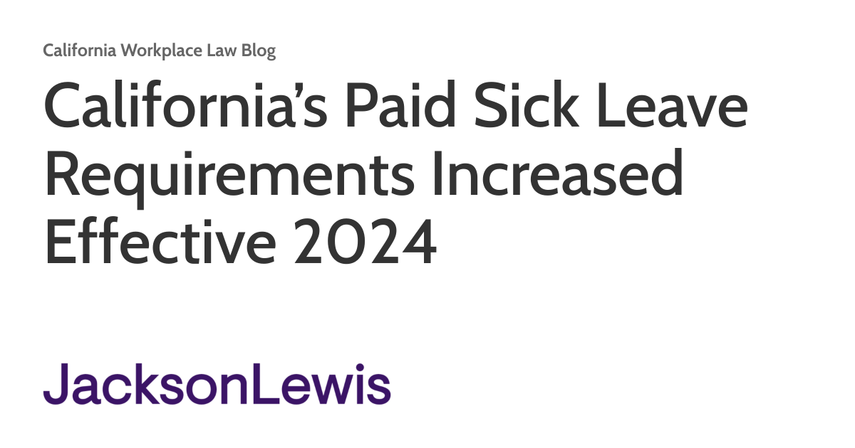 California’s Paid Sick Leave Requirements Increased Effective 2024